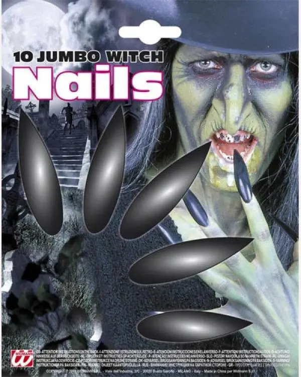 10 Ongles Noirs Sorcière Avec Adhésifs