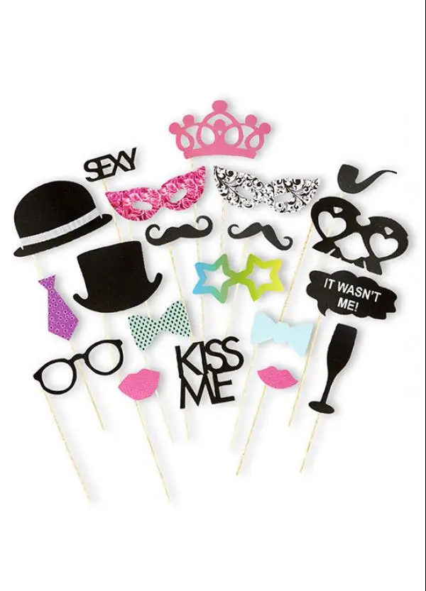 Set de 20 accessoires sur stick pour photo, On tient le stick et l’on ajuste l’accessoire sur son visage, moustaches, lunettes, lèvres, pour prendre une photo rigolote qui laissera de très bons souvenirs. Pour mariage, anniversaire, fête de fin d’année, Noël, réveillon, jour de l’an