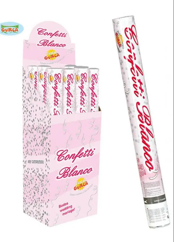 Canon à confettis blancs.