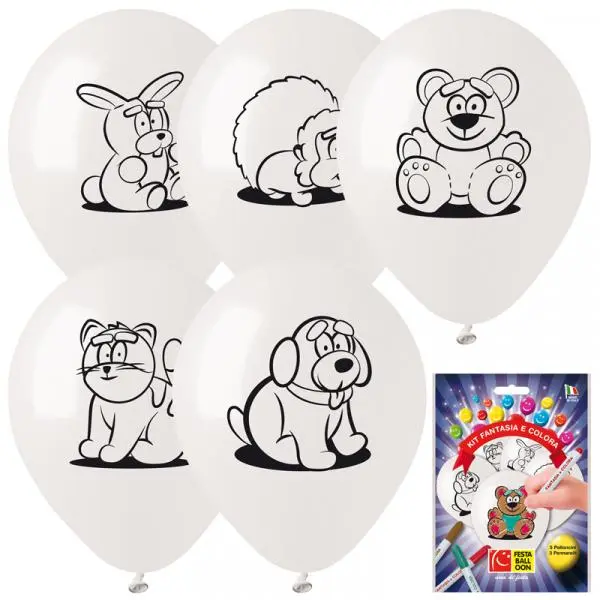 Kit 5 Ballons à Colorier Animaux