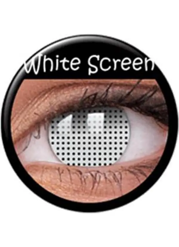 Paire de lentilles entièrement blanches disposent d’une grille permettant, tout en ayant l’oeil quasiment blanc, de voir à travers !