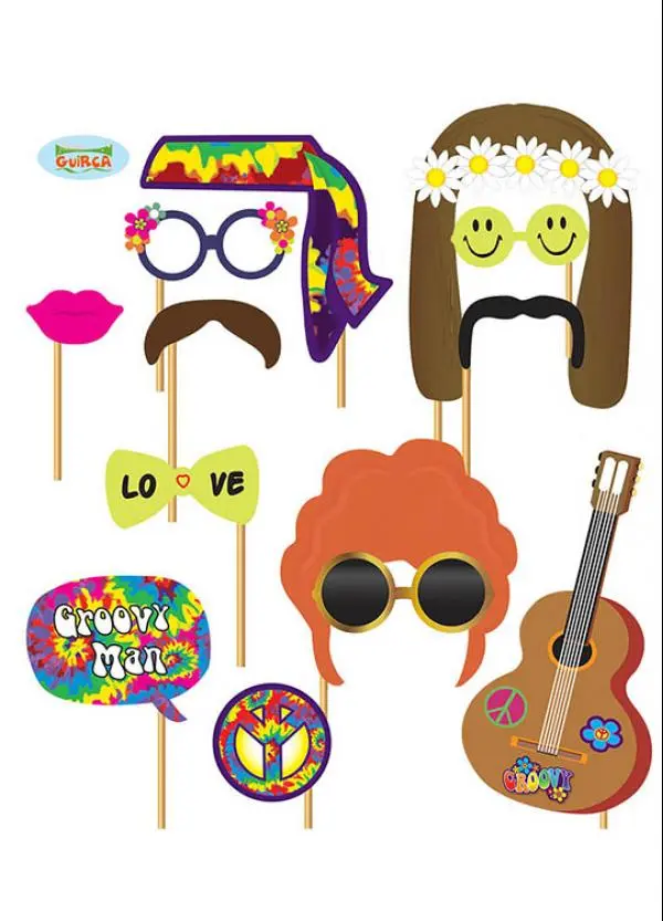 Set de 12 accessoires sur stick pour photo, On tient le stick et l’on ajuste l’accessoire sur son visage, moustaches, lunettes, lèvres, pour prendre une photo rigolote qui laissera de très bons souvenirs.